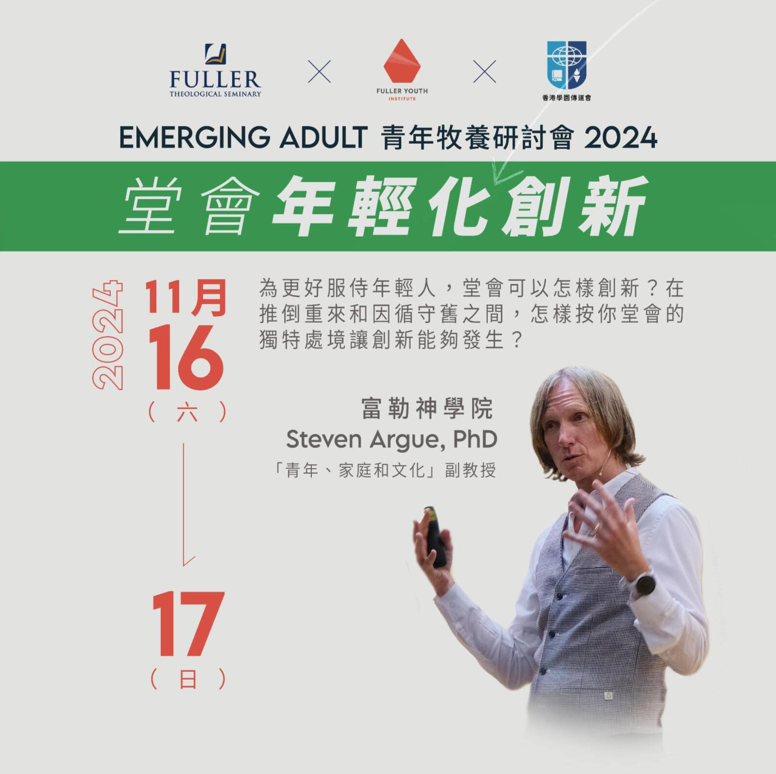 承接上年度 Emerging Adult 青年牧養研討會,今年我們希望在牧養 18-30歳的年輕人(成青, Emerging Adult )這個題目上能夠有進深的認識和實踐。本年度將以 Transitions 成青過渡 及 Innovation 堂會創新 為題,渴望能與主內眾同道一起學習,深願能更好服侍這世代的Emerging Adult。Transitions 成青過渡